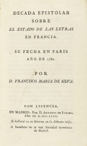 1781. LIBRO : (LITERATURA). SILVA, FRANCISCO MARIA DE : DECADA EPISTOLAR SOBRE EL ESTADO DE LAS LETRAS EN FRANCIA. Madrid : Antonio de Sancha, 1781. 8º menor.