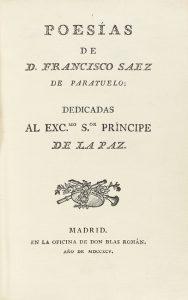 1795. LIBRO : (LITERATURA). SAEZ, FRANCISCO : POESÍAS DE D.... Madrid : Oficina de don Blas Román, 1795. 8º.