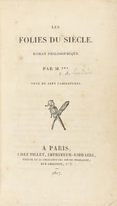 1817. LIBRO : (LITERATURA). LES FOLIES DU SIÈCLE. ROMAN PHILOSOPHIQUE. Paris : Imp. Pillet, 1817. 8º mayor.