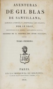 1826. LIBRO : (LITERATURA). LE SAGE : AVENTURAS DE GIL BLAS DE SANTILLANA. Paris : Imp. de Rignoux, 1826. 9 vol. en 12º.