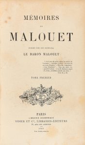 1868. LIBRO : (LITERATURA). MALOUET, BARON : MÉMOIRES DE MALOUET. Paris : Ed. Didier et Cie., 1868. 2 vol. 8º mayor.