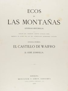1868. LIBRO : (LITERATURA). ZORRILLA, JOSE ; DORE, GUSTAVO [ilustrador] : ECOS DE LAS MONTAÑAS. LEYENDAS HISTORICAS. Barcelona : Ed. Montaner y Simon, 1868. Dos vol. en folio mayor.