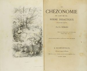 1873. LIBRO : (SÁTIRA). RÉMARD, CH. : LA CHÉZONOMIE OU L´ART DE CH... POËME DIDACTIQUE EN QUATRE CHANTS. A Scoropolis, et se trouve a Paris : Ed. Baillieu, 1873. 8º mayor.