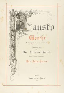 1878. LIBRO : (LITERATURA). GOETHE : FAUSTO. Primera parte lujosamente ilustrada. Trad. Guillermo English. Revisada y adicionada con un prólogo de Juan Valera. Madrid : English y Gras Edit., 1878. Gran folio.