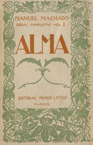 1922. LIBRO : (LITERATURA CASTELLANA). MACHADO, MANUEL : ALMA. OBRAS COMPLETAS VOL. I. Madrid : Ed. Mundo Latino. 1922. 1 vol. de un total de 5. en 8º.