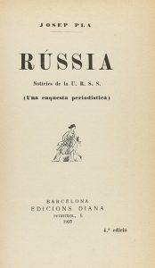 1925. LIBRO : (LITERATURA-DEDICATORIA). PLA, JOSEP : RÚSSIA. NOTICIES DE LA U. R. S. S. (UNA ENQUESTA PERIODÍSTICA). Barcelona : Edicions Diana, 1925. 8º.
