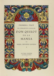 1936. LIBRO : (CERVANTINA). CERVANTES SAAVEDRA, MIGUEL DE : DON QUIXOT DE LA MANXA. Sant Feliu de Guixols : Octavi Viader, 1936. 2 vols. en folio menor.