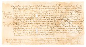 probablemente es copia sobre papel de una compra venta realizada ante notario en la villa de Fogueyrs (Figueras?), escrita en latín.