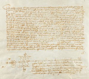 una dote matrimonial, el testamento de Miquel Colom donde hace heredero de sus bienes a Bartomeu Colom, reconocimientos de deuda, un recibo de una camarera del monasterio de San Daniel de Gerona firmado a Joan Colom, propietario del mas Colom.