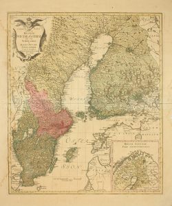 1760 ca. MAPA : (SUECIA). LOTTER, MATTH. ALBERTI : CHARTA NOVA EXHIBENS REGNUM SUECIAE ET COTHIAE UNA CUM NORDLANDIA ET MAGNO DUCATU FINNLANDIAE. 55 X 48 cm, huella, 65 x 54,5 cm.