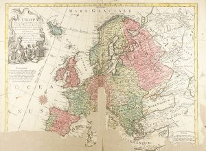 Entre ellos ´Europa Delineata iuxta Observationes´ por el cartógrafo Aug. Vindel, con notables faltas en la parte inferior del mapa.