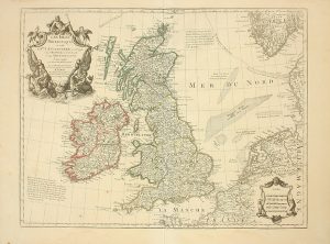 1800. MAPA : (ISLAS BRITANICAS). ISLE, G. DE L´ : LES ISLES BRITANNIQUES. 49 X 62 cm, huella, 54 x 73 cm, papel. Comprende el reino de Inglaterra, Escocia e Irlanda, con las fronteras coloreadas.