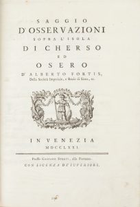 Fortis Alberto, Saggio d'osservazioni sopra l'isola di Cherso ed Osero... In Venezia: Presso Gaspare Storti, 1771.