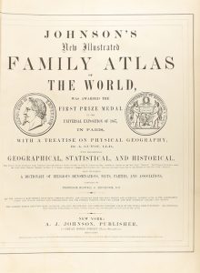 1874. LIBRO : (ATLAS). JOHNSON, ALVIN JEWETT ; GUYOT, A. : JOHNSON´S NEW ILLUSTRATED FAMILY ATLAS OF THE WORL...with a treatise on physical geography by...with descriptions, geographical, statistical, and historical... New York : A. J. Johnson,...