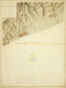 1888. MAPA : LLANOS Y COBOS, I. G. (DIBUJÓ) C. GALVAN. (LITOGRAFIÓ) : PLANO DEL FONDEADERO DE CALELLA, LEVANTADO EN 1885 POR LA COMISION HIDROGRÁFICA AL MANDO DEL CAPITAN DE FRAGATA D. RAFAEL PARDO DE FIGUEROA. MAR MEDITERRÁNEO, COSTA ORIENTAL...