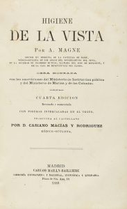 1880. LIBRO : (MEDICINA-OCULTISMO). MAGNE, A. : HIGIENE DE LA VISTA. Madrid : Libr. Carlos Bailly-Bailliere, 1880, 8º.