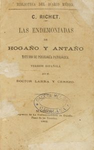 1882. LIBRO : (MEDICINA-PARAPSICOLOGÍA). RICHET, C. : LAS ENDEMONIADAS DE HOGAÑO Y ANTAÑO. Estudio de Psicología Patológica. Madrid : Imp. La Correspondencia de España, 1882. 8º menor.