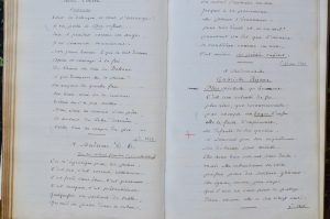 Important manuscrit, débuté en novembre 1877, qui s’étend jusqu’à la mort du comédien survenue en 1883, principalement composé de pièces récitées aux dîners de « La Timbale », banquet d’acteurs fondé par Mocker de l’opéra comique en 1865. On y trouve des renseignements intéressants sur de nombreux comédiens (table des acteurs cités).
