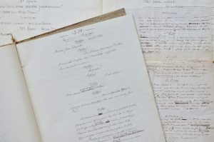 [1876]. Pièce crée à l’Odéon, le 15 janvier 1881. Commentaire d’Ernest d’Hervilly, rédigé en haut de la page de titre en 1886, sur la genèse de la pièce : « Manuscrit primitif de Pocquelin père et fils. Composé au crayon et recopié d’encre en 1876 (juin et juillet) partie dans mon lit, partie dans un fauteuil […] ». Sont jointes 3 gravures ayant servi à l’illustration de l’ouvrage.• La Soupière. Copie manuscrite signée, avec de très nombreuses additions autographes. 28 pp. in-4, broché. Pièce créée en 1885.Sont jointes 6 lettres adressées à Ernest d’Hervilly par divers journalistes.