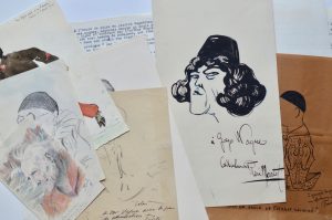 MIMES, CLOWNS, CHANSONNIERS, etc. Cachet de la collection Debauve sur tous les documents. Georges Wague (bel ensemble : une dizaine de dessins originaux, portraits et portraits-charge par Emile ...