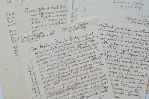 SAINT-POL-ROUX. 6 L.A.S. et 1 M.A.S. à Jean des Cognets (1884/1961), écrivain et directeur de L’Ouest- Eclair. 10 pp. in-4. Manoir de Coecilian, 1934-1938. Cachet de la collection Debauve sur tous les documents. ...