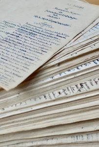 ou la famille de Christian l’imprimeur, 1534-1610 ». Manuscrit de 237 ff. (paginé 165 puis 175 à 398). Première partie de la Bible de poche dont il manque le début « la Compagnie de Jésus » (à part les 4 premiers feuillets). Elle correspond aux pages 247 à 426 au tome 8 de l’édition Flammarion de 1887. La page 279, mais il s’agit d’une erreur dans la numérotation car le texte est bien complet. De même il y a des pages numérotées en double, mais le texte se suit bien. • Deuxième partie de La Bible de poche dont il manque également le début. Manuscrit de 213 ff. (paginé 61 à 310). Elle correspond exactement à la seconde partie, malgré des variantes, surtout de style, correspondant aux pages 427 à la fin du tome 8 et 1 à 98 du tome 9. Le texte du manuscrit comporte 13 pages en bis, mais est bien complet, malgré l’erreur de numérotation p. 181-183 avec manque de la 182 mais sans lacune de texte ; idem pour la page 279. • Troisième partie de La Bible de poche dont il manque également le début. Manuscrit de 126 ff. (paginé 377 à 503), qui correspond aux pages 137 à 248 du tome 9. Plusieurs passages importants ne figurent pas dans l’édition de 1887, notamment p. 412 du manuscrit, qui comporte le long récit d’un massacre qui ne figure pas p. 161 de l’imprimé. • [Précis historique]. Manuscrit de 81 ff. (paginé 1 à 76). Ce précis historique, dans l’édition de 1887, achève La Bible de poche et introduit Le Marteau de Forgeron (fin du XVIe siècle et début du XVIIe). Les pages 1 à 52 concerne la Ligue et le XVIe siècle (édition 1887 tome 9, p. 250 à 314). Il manque la page 53 correspondant à deux alinéas imprimés de la page 314. Les pages 54 à 76 correspondent aux pp. 317 à 341 du tome 9. • « Le Marteau de Forgeron ou le code paysan, 1610-1715 ». Manuscrit de 70 ff. (paginé 1 à 55 bis), daté d’Annecy le 20 janvier 1856. Il correspond à la partie historique qui termine le récit (édition 1887, tome 10, pp. 126 à 167) et à celle qui introduit le récit suivant : Le sabre d’honneur ou fondation de la République Française (pp. 169 à 215). • « Le Sabre d’honneur ou fondation de la République Française, 1715-1851 ». Manuscrit de 183 ff. (paginé de 56 à 385) : il semble donc la suite de la partie précédente. Il comporte : * une préface : l’auteur aux abonnés des Mystères du Peuple, Annecy 20 janvier 1856, non reproduite dans l’édition de 1887 * Le texte de la première partie du récit (p. 59 à la fin, numérotée 59 à 121), ce qui correspond dans le tome 10 aux pages 385 à 448 (la page 206 est en double mais le texte se suit ; il y a une lacune de numérotation mais sans manque de texte de 267 à 276 et de 278 à 287). * une seconde version, en partie de la main d’un copiste des pages 237 à 239 et 249 du manuscrit, ce qui correspond dans le tome 10 aux pages 325 à 329 et 340-341 ; elle est numérotée 288 à 291 et 305. Il est joint un ensemble de gravures ayant servi à l’illustration des Mystères du Peuple, ainsi qu’un ensemble de brouillons épars sur une quarantaine de feuillets.