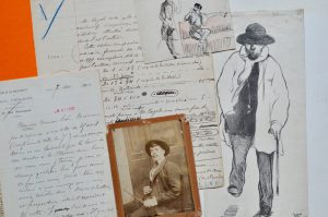 (11,5 x 8,5 cm, contrecollée sur carton, carton déchiré dans les coins). • Dessin à la plume avec rehauts de couleurs, provenant de Léon Vanier, représentant Cazals et Moréas (10,5 x 11,5 cm).• 5 L.A.S. (2 sur cartes) à Karl Boès (4) et E. Raynaud (1), dont une de 4 pages à l’entête du Comité du monument à Paul Verlaine, sur l’édition du Jardin des ronces (1902). • Brouillon du contrat d’édition passée avec La Plume de Karl Boès, pour Le Jardin des ronces. • Épreuve d’une lithographie de Cazals représentant Verlaine marchand (29 x 13 cm, un coin coupé) + qq. autres documents.