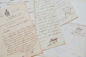 Tourtan (1815), Allix (1818), François Adreossy (2, an 11-1827), A. Caffarelli (1813, abîmée), duc de Feltre (1813), Grouchy (LAS 1821), Hulin, Mortier (1818), Savary duc de Rovigo (1813), Sébastiani (Olten an 7), Arcambal (an 11), Kellermann (QG de Chambéry, an 5, à son en-tête), Santerre (LAS 1792), Bernadotte (griffe, an 7), etc. On joint un dossier de 4 pièces sur le capitaine Perdigau (dont LAS du général Fr. Andreossy (QG de Boulogne, an 12).