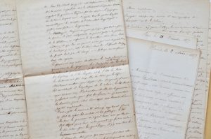 3 lettres signées, 1857-1858. 15 pp. in-folio. Instructions données pour le voyage. • Rapport du voyage de la Seine. Manuscrit de 7 pp. in-folio. • 2 autres manuscrits, l’un sur les avaries subies par la Seine. 5 pp. in-folio. Sont joints quelques autres documents. Rare ensemble d’un grand intérêt.