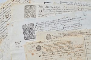 MARINE - CONNAISSEMENTS. Une soixantaine de pièces des XVII e (8, Marseille 1644-1653), XVIII e (17), XIX e s. (34). Cachet de la collection Debauve sur tous les documents. Très bel ensemble, avec de jolies ...