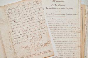 mémoire sur les mortiers, leur installation à bord des bombardes […] » (11 pp. in-folio, 1827). 2 quittances XVIIIe par le trésorier général de la Marine. Parchemin signé par le comte de Toulouse (griffe, autorisation la prise du navire le Dauphin et la confiscation de sa marchandise, 1691). 2 lettres de Sartine sur la nouvelle ordonnance de marine et sur l’achat d’une « flûte frégatée » en « billets des trésoriers de la Marine », lettres commerciales du XIXe, etc.
