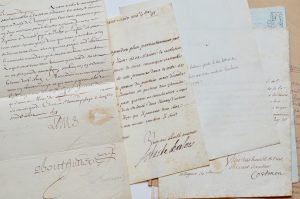 ÉTATS de BRETAGNE. 5 lettres signées, XVII e - XVIII e s. Cachet de la collection Debauve sur tous les documents. Convocations aux États de Bretagne. Lettres signées Louis XIII (secrétaire) contresignée par ...