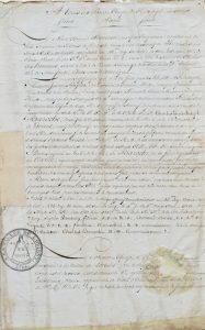 FRANC-MAÇONNERIE à LORIENT. Pièce manuscrite signée avec restes de sceau. « à la Vallée de Lorient », 10 décembre 1810. 2 pp. in-folio. Mauvais état (réparations grossières). Cachet de la collection Debauve. ...