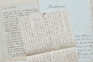 date. Cachet de la collection Debauve sur tous les documents. Belle correspondante érudite, l’une des lettres consacrée aux marbres des rivages de la rivière de Tréguier.