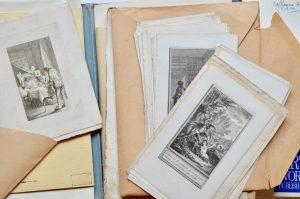 [ALAIN-RENÉ LESAGE (Sarzeau 1668/1747), romancier et auteur dramatique, auteur du Diable boiteux]. Cachet de la collection Debauve sur tous les documents. • Ensemble de gravures XVIII e destinées à illustrer ...
