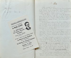 « souvenir en manière de dédicace », 5 pp. in-4). Alfred Gernoux (8 L.A.S.). Jules Grandjouan. Charles Monselet (20 L.A.S. + M.A.S. d’une chronique sur le théâtre (6 pp. in-4) + fragment d’épreuves + brochures et documents divers). Hugues Rebell (2 M.A.S. « le catéchisme des snobs » (11 pp. in-4) et « Entre peau et cuirasse » (11 pp. in-4) + L.A.S. + placard d’épreuves corrigées d’Entre peau et cuirasse, paru dans La Plume). Constance de Salm-Dyck (12 belles et très longues L.A.S à Thurot, Depping, etc.). Mathieu Guillaume Villenave (très abondante correspondance : 90 minutes de lettres écrites de 1782 à 1787 + 6 L.A.S. postérieures + 5 documents émanant du tribunal révolutionnaire de Nantes l’appelant comme avocat (an 3) + intéressante lettre de Macé-Desbois directeur du jury d’accusation chargé d’instruire le procès des Terroristes, à Barnave [Villenave], Angers fructidor an 3 + plusieurs articles manuscrits une série de reçus pour ses travaux littéraires + 1 L.A.S. au président des Soirées de Momus). Très bel ensemble. Est joint un petit dossier autour de Jules Verne et un manuscrit XIXe par François Allard.