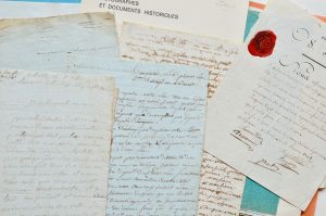 en différents lieux de Bretagne (Brest, Rennes, Belle-Isle, etc.) : congés de réforme, actes de décès, certificats militaires, etc. la plupart avec joli sceau armoriés en cire rouge. • Armée des côtes de l’océan. 3 certificats dont un dressé par le médecin en chef de l’armée des côtes de l’océan, apostillé par Carnot. • Duc de Feltre. 8 L.S. au commandant de la 13e division militaire à Rennes (1810-1814).