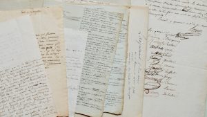 révolutionnaires : députés, conventionnels, généraux, administrateurs, etc. Pierre Le Dizez de Penanrun (constituant suppléant), Jean-Denis Lanjuinais (lettres et notes manuscrites de droit romain et de philologie + lettres de Victor), Louis-Raymond Rosières (contrôleur de la Marine à Lorient, 5 P.S. avec d’autres commissaires, vignettes), général Avril (3, dont 2 intéressantes de 1794), le conventionnel Louis-Urbain Brüe (8 L.A.S. dont 4 longues et intéressantes au représentant du peuple Perret et 2 P.S.), Charles Le Masle (évêque constitutionnel du Morbihan), général Quantin (15 lettres adressées à lui dont 8 du général Delaborde an 13-1807), etc. Est joint un dossier documentaire sur la correspondance du conventionnel Lequinio.