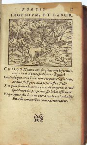 supérieur sur tout le volume, plusieurs figures gribouillées à l’encre brune, deux petits trous sur une page. Tirage des bois assez médiocre. Ouvrage illustré d’un bois gravé en tête de chaque poème, contenant (p.79) l’une des toutes premières illustrations d’une partie de jeu de paume, ancêtre du tennis. La première édition est parue en 1552. Brunet IV, 634.