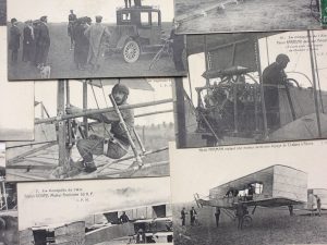 CARTES POSTALES. La Conquête de l’Air. Édition I. P. M. Vers 1910-1916. Série de 46 cartes numérotées de 1 à 46. L’ensemble est en bon état et la plupart des cartes non envoyées. On joint 5 cartes sur l’aviation (1910-1912). ...