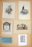 lithographiés… plus ou moins classés par genre (armoriés, célébrités …) ou par époque (XVIIe à XXe s.), en partie identifiés. La collection contient essentiellement des ex-libris de particuliers, mais également qq. étiquettes de bibliothèques publiques. Ensemble en bel état (les ex-libris sont fixés par une petite bande de papier en tête). Sont joints une cinquantaine d’ex-libris en plusieurs exemplaires identiques et quelques fac-similés. 300 / 40