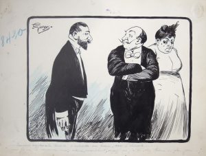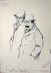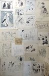 Le Dénuement. Encre. 32 x 25 cm. • Léonce BURRET (1866-1915). On les appelle Agents des Mœurs parcequ’ils n’en ont pas. Encre de Chine et crayon bleu, annoté en bas à droite : Dessin de Pasquier fait par Burret. 37,5 x 26 cm.• J. CADET. Une petite Femme qui ne veut pas comprendre. Encre et aquarelle. 33 x 31 cm.• Georges CUIR? Prévision. Encre noire et crayon bleu. 34 x 22 cm.• Paul DUC. Une petite Femme assise… Encre et aquarelle. 32 x 20 cm.• FERCO. Rancœur. Encre noire et crayon bleu. 32 x 38 cm.•Pol FERJAC (Paul Levain dit, 1900-1979). Sensibilité. Encre noire. 21 x 27 cm.• H. P. GASSIER (1883-1951). L’Arrivée d’Abel Bonnard. Encre noire. 19 x 25 cm.• Joseph HÉMARD. Mince ! Il est long çui-là mais i’ n’est pas large. Encre de Chine et crayon bleu. 32x 40 cm. • JULHÈS (1896-1985). La crise touche à sa fin… Encre de Chine, signé en bas à gauche. 32 x 22 cm. • PAX ? You don’t know how tough I am … Encre de Chine, signé en bas à droite. Légende en anglais avec traduction française. Cachet au dos : The Tudor Art Agency. • Mario PEZILLA (mort en 1918). C’est Bizarre : voilà quatre apéritifs que je prends… Encre de Chine sur carton, signé en bas à gauche. 50 x 33 cm. • V. SPAHN. Puisqu’elle représente le Printemps ta bonne femme, pourquoi que t’y mets pas un parapluie ? … Encre de Chine, mine de plomb et crayon bleu. 32 x 25 cm. • V. SPAHN. Moi je n’aime aucune Bête … Encre de Chine, mine de plomb et crayon bleu. 32 x 22 cm. • V. SPAHN. Je t’en prie mon cher ne t’occupe pas de ma toilette … Encre de Chine et crayon bleu. 32 x 25 cm.• STA (H. De). Une Partie de Chasse. Encre de Chine, signée en bas à gauche. 36 x 27 cm. • WILLIAM. Cake Walk. Encre de Chine (traits de plume) et crayon bleu, signé William en bas à gauche dans le dessin et dans la marge. 43 x 31,5 cm.200 / 3