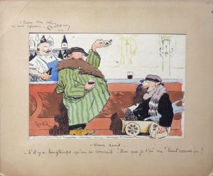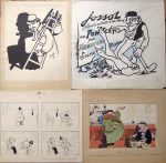Comœdia 26 oct. 11. • Henri-Gustave JOSSOT (1866-1951). Le Colleur d’affiche ? Encre de Chine, signée et datée 1897. 28 x 22 cm. • Henri-Gustave JOSSOT (1866-1951). Publicité. Jossot plante sa tente et ses choux au Pontcet par Faremoutiers Seine et Marne. Encre de Chine et crayon bleu. 31 x 33 cm. Déchirure de 3 cm en pied.• RABIER (Benjamin). Affaire de graisse. Saynète en 4 cases, encre de Chine et crayon bleu, signée en bas à droite. 25x30cm. Petite déchirure en tête (sur le titre). Cachet au dos La Chronique Amusante (parution de 1886 à 1920).