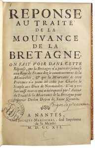 [LOBINEAU (Gui Alexis dit Dom Lobineau)]. Réponse au Traité de la Mouvance de la Bretagne. On fait voir dans cette Réponse que la Bretagne n’a point été soumise aux Roys de France dez le commencement de la Monarchie… ...