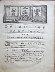 [MUSIQUE]. LE MAY (Mr.). Principes de Musique par demandes et réponses, Dédiés à Monsieur Le Marquis de Guer, Président à Mortier au Parlement de Bretagne, & à Madame Son Épouse. Rennes, Julien- Charles Vatar, 1782. ...