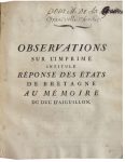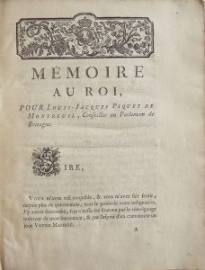 Mémoire au Roi pour Louis-Jacques Piquet de Montreuil, Conseiller au Parlement de Bretagne (1767); Mémoire à consulter et consultation pour M. de la Chalotais et M. de Caradeuc (Paris, Cellot, 1770); Mémoire pour Louis Charette de la Gacherie (s. d.); Réponse des États de Bretagne au Mémoire du duc d’Aiguillon et Observations sur [le précédent], (Paris, Le Jay, 1771); Gabelles, Provision de Sel (1757); … Procès-Verbal de ce qui s’est passé au Lit de Justice Tenu par le Roi au château de Versaille le vendredi 7 décembre 1770 (titre déchiré avec manque)…230. CARNAC & Archéologie. Importante réunion d’ouvrages et plaquettes, dont : • FOUQUET (Alfred). Guide des Touristes et des Archéologues dans le Morbihan. Vannes, A. Cauderan, 1854. In-12, br. Dos fragile, couv. défraîchie. (4)-iv-149-(3) pp. Carte dép. • RIALAN (Ernest). Découvertes Archéologiques dans le Morbihan en 1884 et 1885. Vannes, Lafolye, 1885. In-4, broché. Dos en partie fendu. (4)-35-(1) pp. • RIALAN (Ernest). Études d’archéologie, Ti doué baris, De l’origine du mot buste. La Coarde et La Vénus de Quinipily. Première partie. Vannes, Lafolye, 1891. In-4, broché. Couv. défraîchie. Iv-36-41 pp. Qq. déchirures en marge. • [MONLEZUN] (Baron de). Le Monument de Carnac et les deux pierres colossales de Locmariaquer. Paris, Duprat et Dumoulin, 1845. In-8, reliure demi-chagrin vert. Dos lisse orné. 46 pp. 2 plans hors-texte. Qq. rousseurs, notamment sur les tranches. Ex-libris gravé contrecollé Ch. Sauvageot sur la page de garde. Bon état. • Collectif. Carnac et ses Alentours. Lorient, Grouhel, 1878. In-8, broché. Dos en partie déchiré. Illustrations dans le texte et à pleine page. Carte dépliante en fin d’ouvrage. • LE ROUZIC (Z.). Hache Plate en Chloromélanite des Sept-saints commune d’Erdeven (Morbihan). Extrait du Bulletin de la Société Préhistorique Française, n°6, 1928. In-4, broché. 4 pp. Bon état. 100 / 15