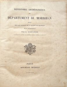 ROSENZWEIG (Louis). Répertoire Archéologique du Département du Morbihan rédigé sous les auspices de la Société Polymathique de ce département. Paris, Imprimerie Impériale, 1863. In-4, reliure de ...