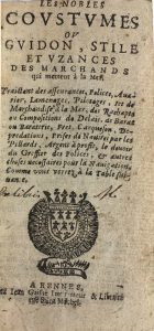 [DROIT]. Les Nobles Coustumes ou Guidon, Stile et Uzances de Marchands qui mettent à la Mer… HULIN (Gabriel). Traité de la Nature et Usage des Marches séparantes les Provinces, de Poitou, Bretange et Anjou… Rennes, Jean Gaisné, s. d. ...