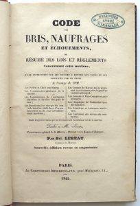 [DROIT Maritime]. LEBEAU (Sylvain). Code des Bris, Naufrages et Échouements, ou résumé des lois et règlements concernant cette matière… Nouvelle édition revue et augmentée. Paris, Au Comptoir des Imprimeurs-unis, 1844. ...