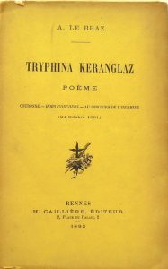 LE BRAZ (Anatole). Réunion d’ouvrages : • Tryphina Keranglaz. Rennes, Caillière, 1892. In-12, broché. Premier plat détaché. 94-(1) pp. Marges jaunies. Édition originale constituée par le tirage à part, à petit ...